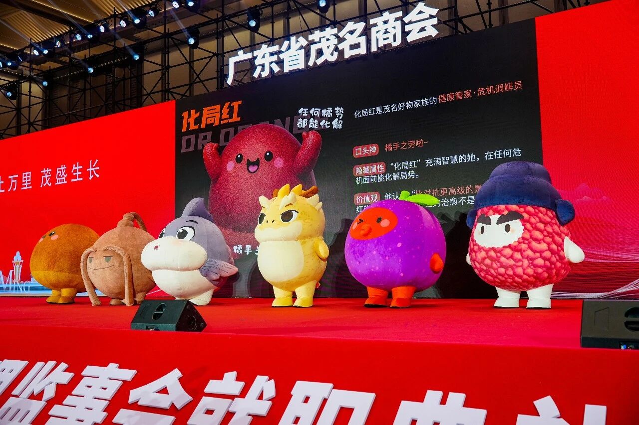 签约仪式后,中金宏达集团发布了双方首个合作成果——“好心茂名,好物家族”茂名“五树一鱼”特色IP,配套系列IP手办也同步亮相,成为大会一大亮点。