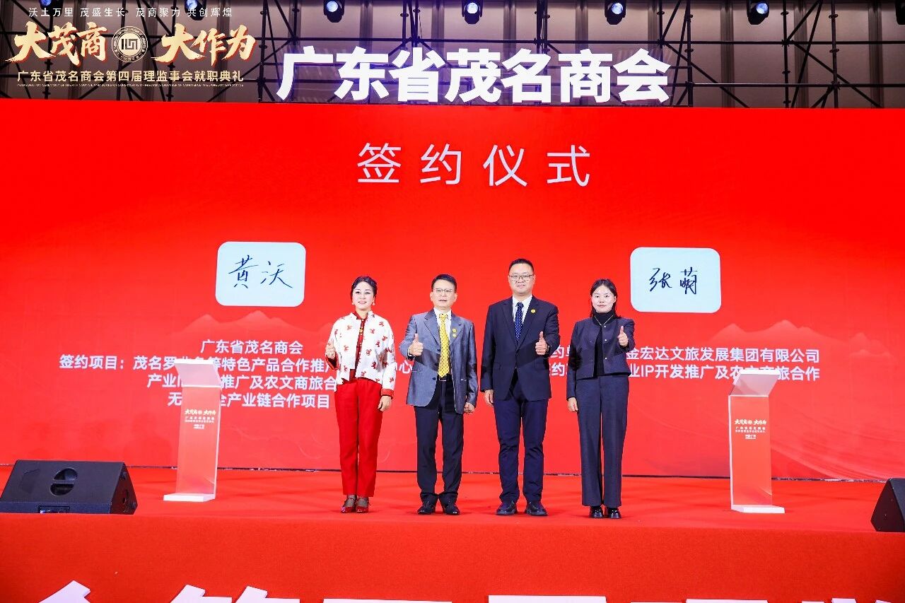 1月31日晚,广东省茂名商会第四届理监事会就职典礼暨助力茂名高质量发展大会顺利举行。会上,中金宏达文旅发展集团(下称“中金宏达集团”)与广东省茂名商会正式签署合作协议,双方携手推进产业IP开发推广及农文商旅融合项目建设。